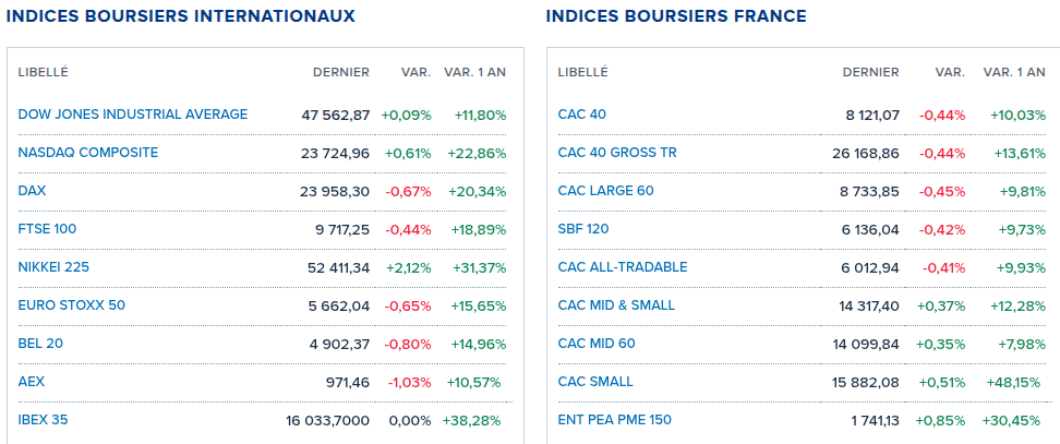 Nouvelles économiques – 26/10/2025