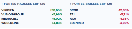Viridien, plus forte hausse du SBF 120 à la clôture de la séance du vendredi 31 octobre 2025. Information fournie par AOF •31/10/2025 à 17:53
