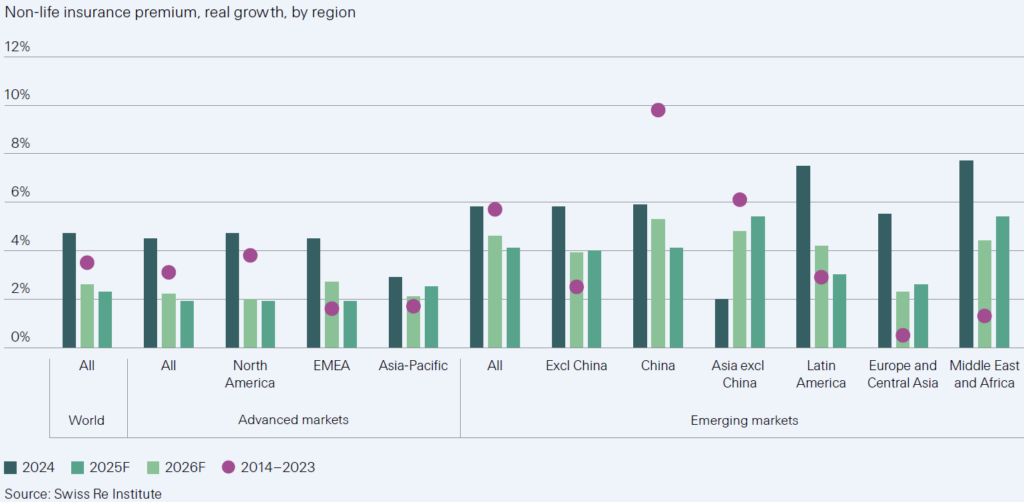 La dynamique est plus mitigée en casualty US (RC), où les indemnisations pour dommages corporels augmentent plus vite que l’inflation normale (“social inflation”), la fréquence des “nuclear verdicts” et les incertitudes réglementaires imposent une discipline tarifaire soutenue.