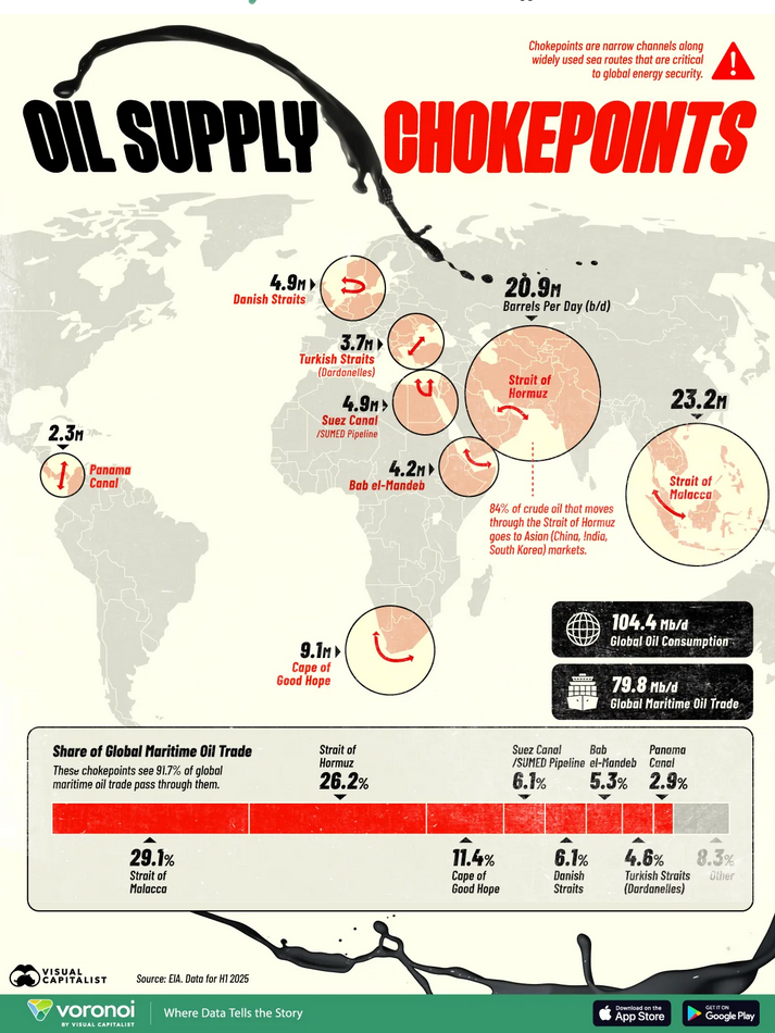 ➡️ La troisième est la logistique. Les détroits, ports, oléoducs, terminaux de chargement, capacités de stockage et raffineries sont essentiels. Le marché du pétrole n’est pas seulement un marché de molécules, c’est un marché de flux. Une rupture au détroit d’Ormuz, comme actuellement, ou un engorgement à Cushing peut produire un choc de prix même sans destruction massive de production. L’épisode du WTI négatif en avril 2020 illustre parfaitement cette dépendance à la logistique.