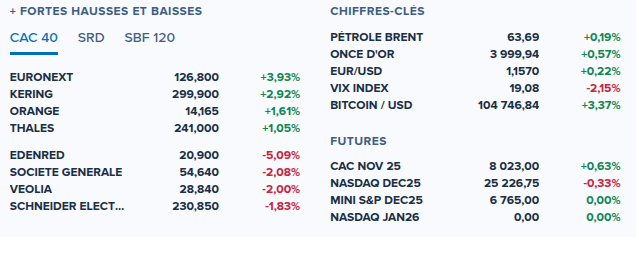 | Pensions alimentaires : un changement fiscal majeur Un amendement adopté par les députés dans le cadre du Budget 2026, modifie en profondeur la fiscalité des pensions alimentaires. Le parent qui verse la pension ne pourrait plus la déduire de ses impôts, tandis que celui qui la reçoit ne serait plus imposé. Une réforme présentée comme une mesure de justice sociale, mais dont les effets restent incertains. Budget 2026 La flat tax actuelle de 30% pourrait grimper à 31,4% et cette augmentation serait applicable dès 2025 du fait de l’augmentation votée le 27 octobre de la CSG sur les revenus des capitaux de 9,2%, taux actuel, à 10,6% ! Le taux des prélèvements sociaux actuellement de 17,20% passerait donc ainsi à 18,60% et les tranches fiscales seraient donc majorées pour les revenus concernés soient revenus financiers et fonciers ainsi que les plus-values immobilières ! Propriétaires-bailleurs, le massacre fiscal augmente encore ! Au lieu des 47,20% minimum auxquels vous étiez déjà soumis, vous voici désormais imposés à 48,60% ! Wall Street et New York Wall Street s’inquiète de la compétitivité de New York après l’élection de Mamdani. Bien que le maire de New York n’exerce pas de contrôle direct sur Wall Street, ses positions influencent la façon dont la ville est perçue par les entreprises et, si nombre d’investisseurs disent pouvoir comprendre les problèmes d’accessibilité financière soulevés par Zohran Mamdani, ils expriment des doutes sur sa politique fiscale. Boeing Nouveau déboire dramatique pour le rival américain d’Airbus après le crash d’un avion-cargo UPS Les deux géants américains de la livraison de colis, UPS et FedEx, ont immobilisé leur flotte d’avions-cargos MD-11 après le crash d’un appareil mardi dernier aux Etats-Unis. Le fabricant de cet avion, McDonnell Douglas, est propriété de Boeing depuis 1997. Métaux rares Pékin a confirmé ce dimanche la suspension de l’interdiction d’exportation vers les Etats-Unis de métaux rares cruciaux pour l’industrie. Reste à savoir si des autorisations vont être délivrées et surtout dans quelles proportions. Impôt sur la Fortune Improductive On ne change pas le sigle qui reste IFI mais on en change totalement la substance ! Les fonds en euros de nos contrats d’assurance-vie sont désormais sous l’épée de Damoclès de la nouvelle trouvaille de nos députés, l’impôt sur la fortune improductive (IFI). Le texte voté le 31 octobre est clair, l’assiette comprend « les sommes, rentes ou valeurs d’assurance-vie, exclusion faite de celles placées en unités de compte tels que mentionnées à l’article L. 131 1 du code des assurances, ainsi que les liquidités et placements financiers assimilés ». Shutdown aux Etats-Unis : Le trafic aérien bientôt réduit « à peau de chagrin » si la paralysie budgétaire se poursuit Faute d’être payés en raison du « shutdown », de nombreux contrôleurs aériens ne travaillent plus, obligeant les compagnies aériennes à supprimer plus d’un millier de vols par jour Elon Musk Musk promet pour 2026 la production à la chaîne de robots humanoïdes Tesla Optimus. Le constructeur automobile Tesla construit une ligne de production pour fabriquer un million de robots, qui serait opérationnelle dès l’an prochain. Il table sur une deuxième ligne d’une capacité de 10 millions d’unités prochainement. |