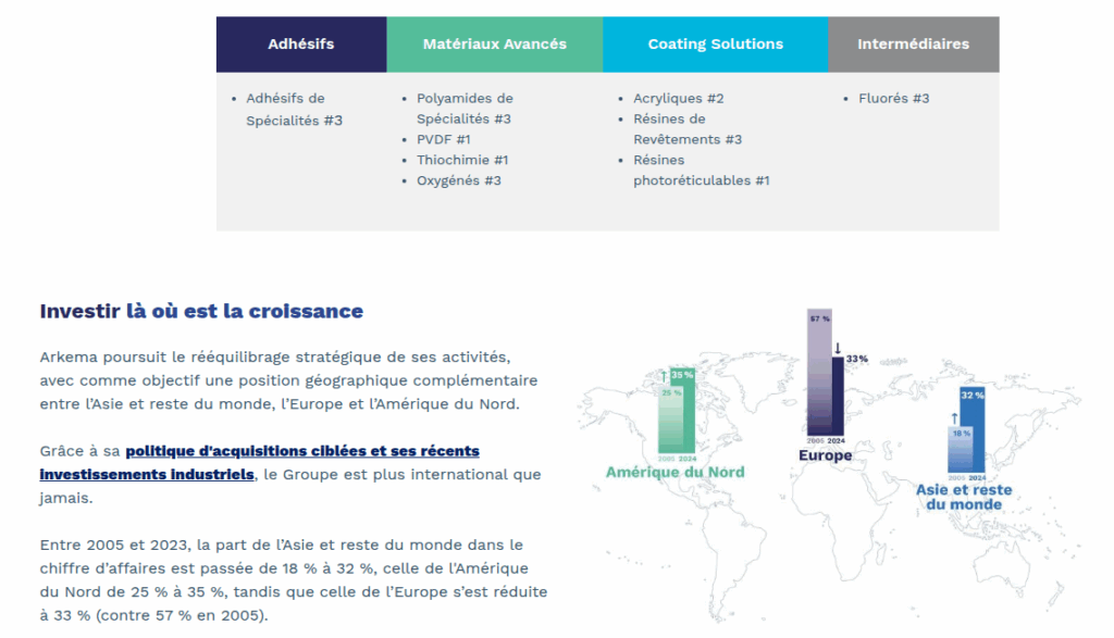 L’organisation d’Arkema est le fruit de profondes transformations opérées au cours des dernières années pour positionner au mieux le Groupe comme un leader des matériaux de spécialités.