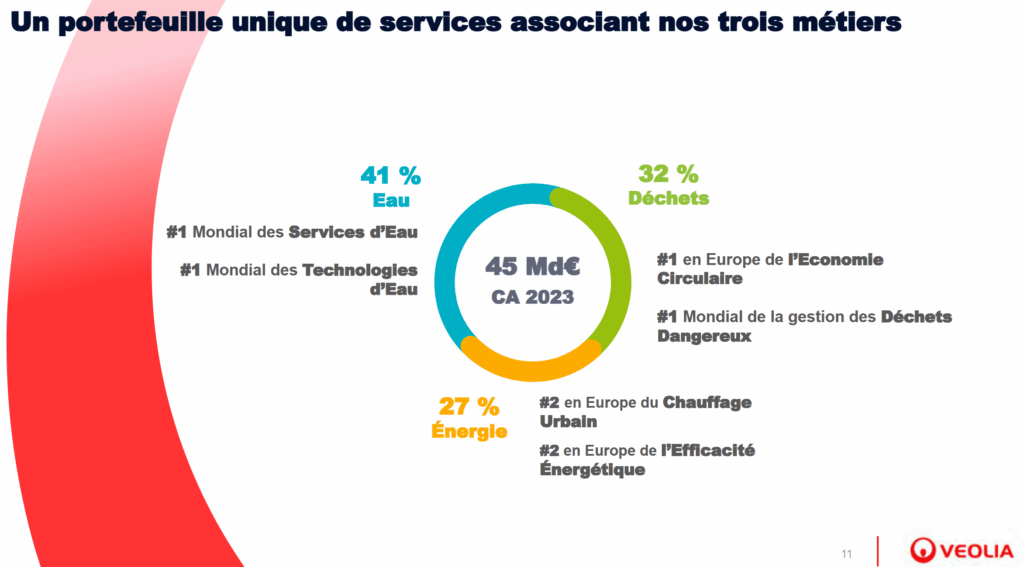 🇫🇷 Veolia Environnement : premier opérateur mondial des services d’eau, énergie, déchets. Croissance organique 5 %, couverture géographique équilibrée. Exposition ESG / transition verte.