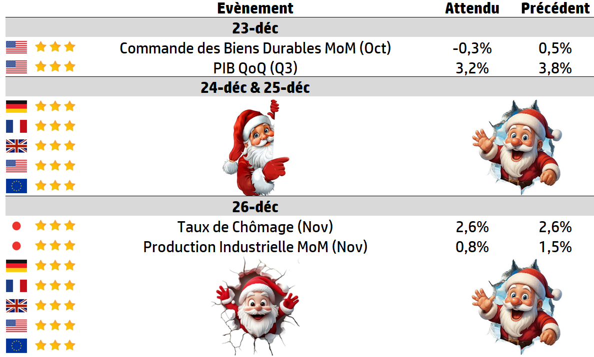 | Contribution à la croissance et au PIB La consommation représente : 🇺🇸 environ 68 % du PIB américain, 🇬🇧 🇪🇺 environ 60 % du PIB britannique et européen. 🇫🇷 environ 55 % du PIB français Dans ce cadre, Noël agit comme un amplificateur macroéconomique de fin de cycle annuel. Un Noël dynamique peut ajouter plusieurs dixièmes de point de croissance au PIB trimestriel, tandis qu’un ralentissement des dépenses festives pèse directement sur la dynamique économique du premier semestre suivant. En ce sens, Noël est devenu un baromètre avancé de la trajectoire macroéconomique de l’année à venir. Emploi et activité : un mini-cycle économique saisonnier Aux États-Unis, la période des fêtes génère historiquement entre 400 000 et 600 000 emplois saisonniers dans le commerce, la logistique et l’hôtellerie. En 2025, ce chiffre se situe autour de 500 000 emplois, un niveau inférieur à la moyenne de long terme, traduisant : ➡️ une prudence des entreprises, ➡️ une automatisation accrue, ➡️ une anticipation de demande plus volatile. Cette modération de l’emploi saisonnier limite l’effet multiplicateur de Noël sur l’économie réelle. Digitalisation, e-commerce et paiements : la transformation structurelle de Noël Les ventes en ligne représentent désormais un pilier central de l’économie de Noël en hausse contante chaque année. Dans tous les pays occidentaux, les comportements des consommateurs évoluent profondément : ➡️ 86 % comparent systématiquement les prix, ➡️ 84 % consultent des avis, ➡️ près de 80 % utilisent des programmes de fidélité ou de cashback, ➡️ plus de 40 % recourent déjà à des outils d’IA pour optimiser leurs achats. Cette transparence accrue exerce une pression structurelle sur les marges, au profit des acteurs capables de maîtriser leur supply chain et leur data. Marchés financiers et saisonnalité La période de Noël est également marquée par : ➡️ une baisse de liquidité, ➡️ des mouvements de marché parfois amplifiés, ➡️ et le célèbre “Santa Claus rally” : les données historiques montrent que les mois de novembre et décembre offrent souvent les meilleurs rendements boursiers de l’année. Selon CFRA Research, le S&P 500 a enregistré une hausse moyenne de 3,1 % en novembre et décembre depuis 1945, et affiche des rendements positifs dans 76 % des cas. Ces commentaires font suite à la publication de données de la Bank of America qui montrent une tendance similaire : depuis 1927, le S&P 500 a progressé en novembre et décembre dans 59 % des cas, avec une hausse moyenne de 1 %. Ce phénomène reste toutefois statistique, et non prédictif, dans un environnement dominé par les taux et la géopolitique. |