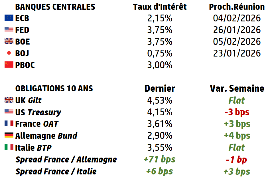 | Comme d’habitude, les deux semaines autour de Noël et du Nouvel An sont assez calmes. Les chiffres des biens durables et les procès-verbaux de la Réserve fédérale (Fed) sont toutefois publiés, ainsi que les indices des directeurs d’achat (PMI) chinois, ce qui donne aux investisseurs quelques informations supplémentaires, même si la Fed semble vouloir maintenir sa politique accommodante au début de la nouvelle année. Habituellement, une ou deux entreprises publient leurs résultats au cours de ces deux semaines, mais cette année, le calendrier est entièrement vide. |