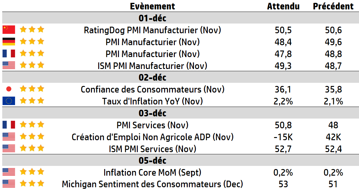 | Les chiffres de l’emploi non agricole aux États-Unis (NFP) devraient être publiés cette semaine, mais les données de décembre ont été reportées au 16 décembre, ce qui signifie que seul le rapport ADP sera publié comme d’habitude mercredi. Cette semaine, la liste comprend également les indices des directeurs d’achat (PMI) des États-Unis, de la Chine, ainsi que de la France et de l’Allemagne. |